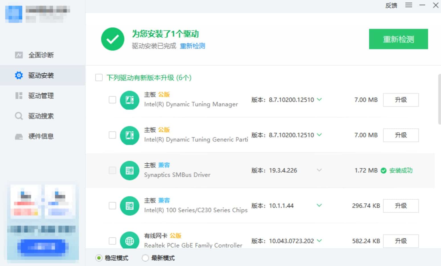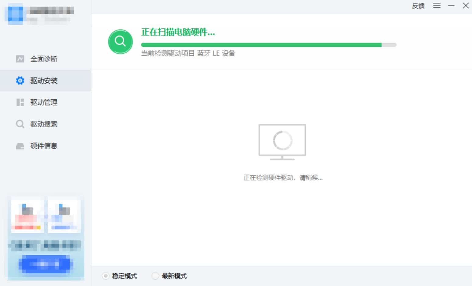 软件会自动扫描电脑硬件,检测需要安装或更新的驱动