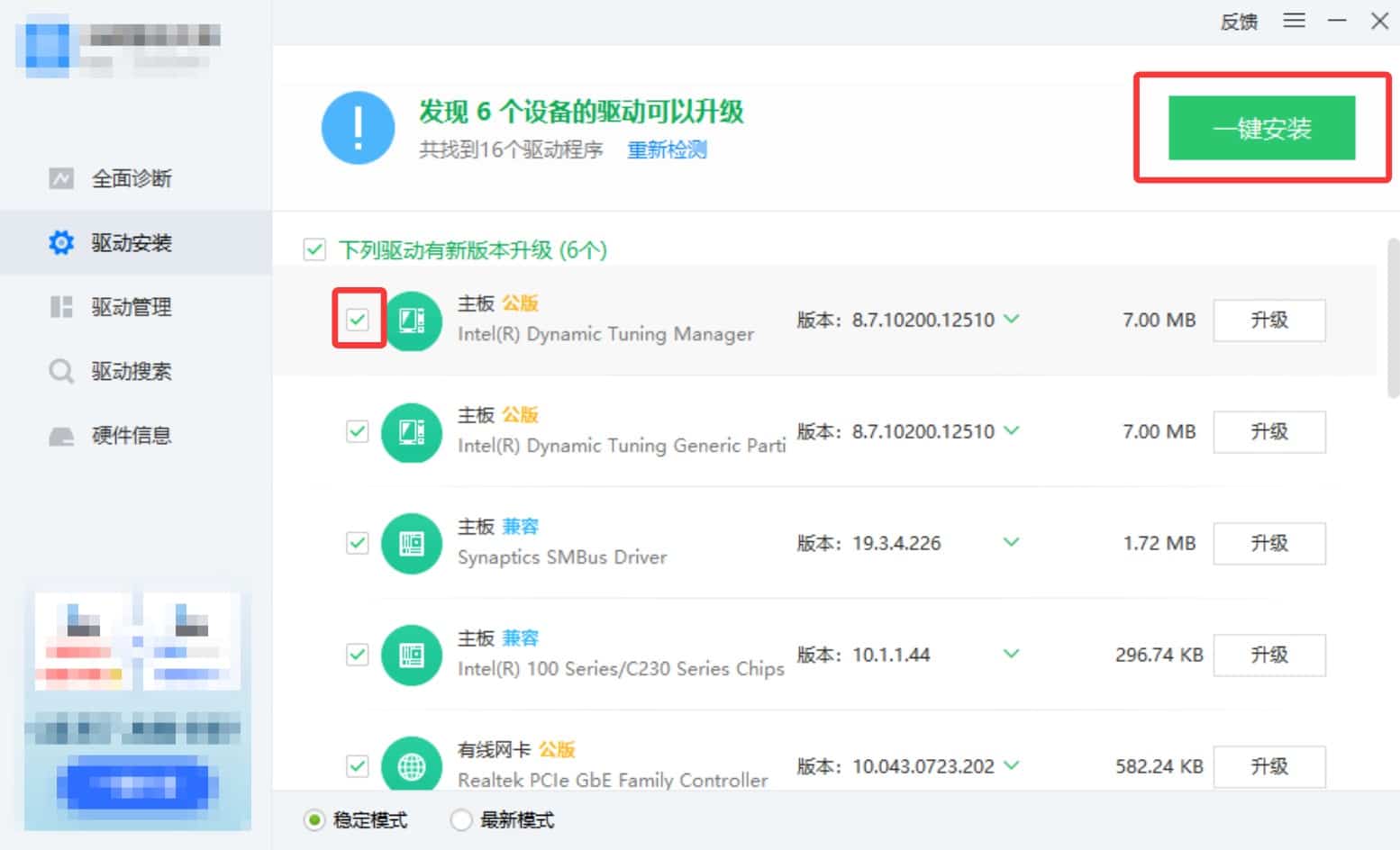 勾选你所需要安装的驱动程序